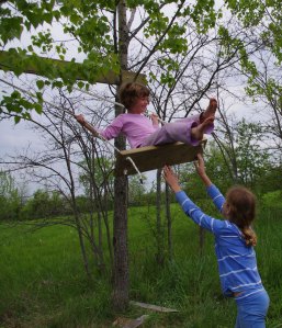 Among many things, I promised the girls a swing on their farm. And today they learned how to fly.