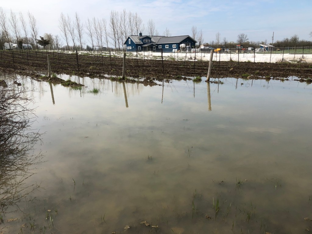 It’s a problematic low spot between vineyards. Normally what happens in Spring is the snow melts, it gathers all the surrounding water to become a pond, the pond gets topped up by April rains, and then in late April the sun comes out and everything drains away in a week or two.