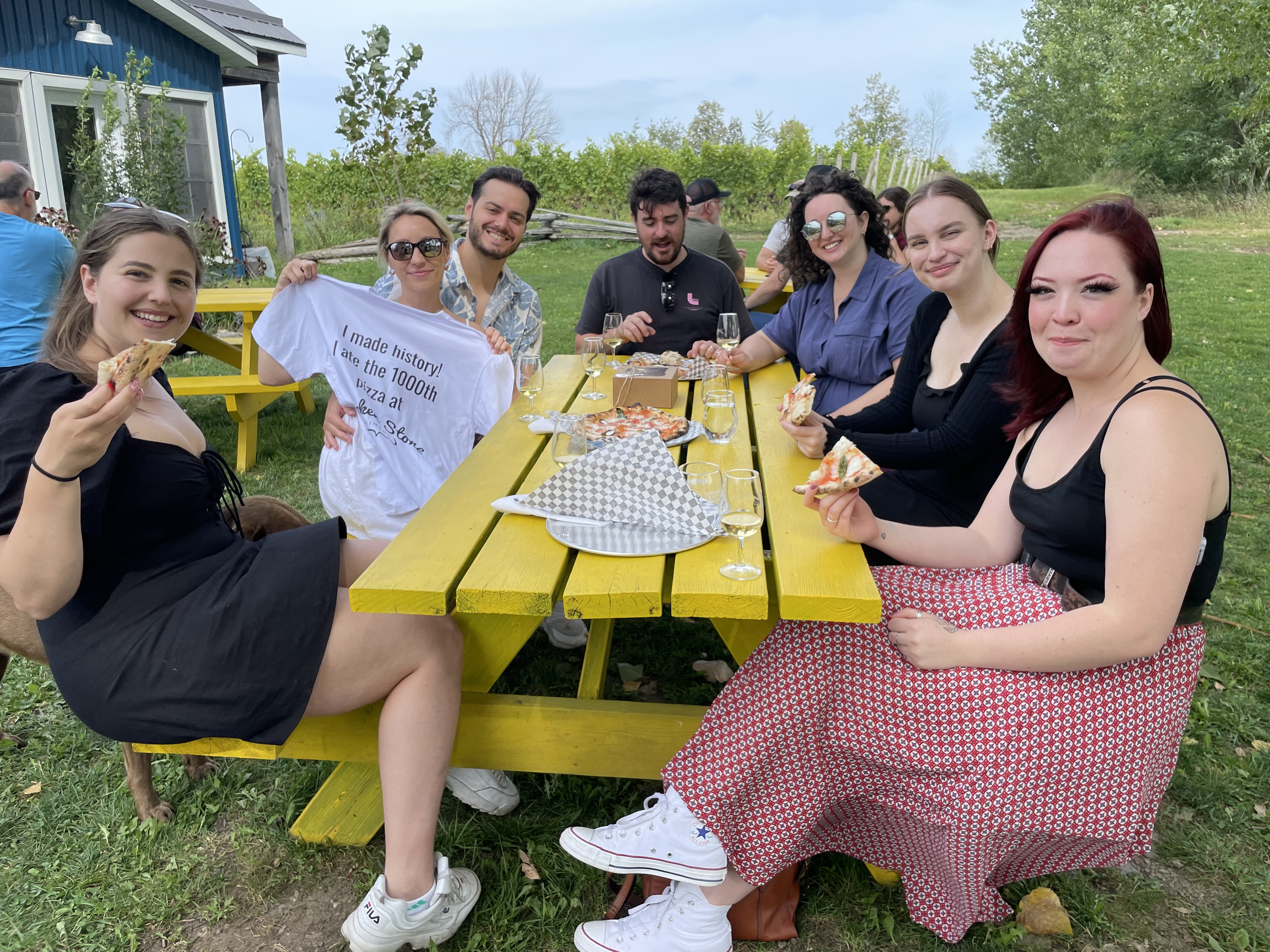 After eight weeks we sold pizza # 1,000! A good landmark to celebrate. We awarded our 1,000th customer with a free t-shirt and their group ate for free.