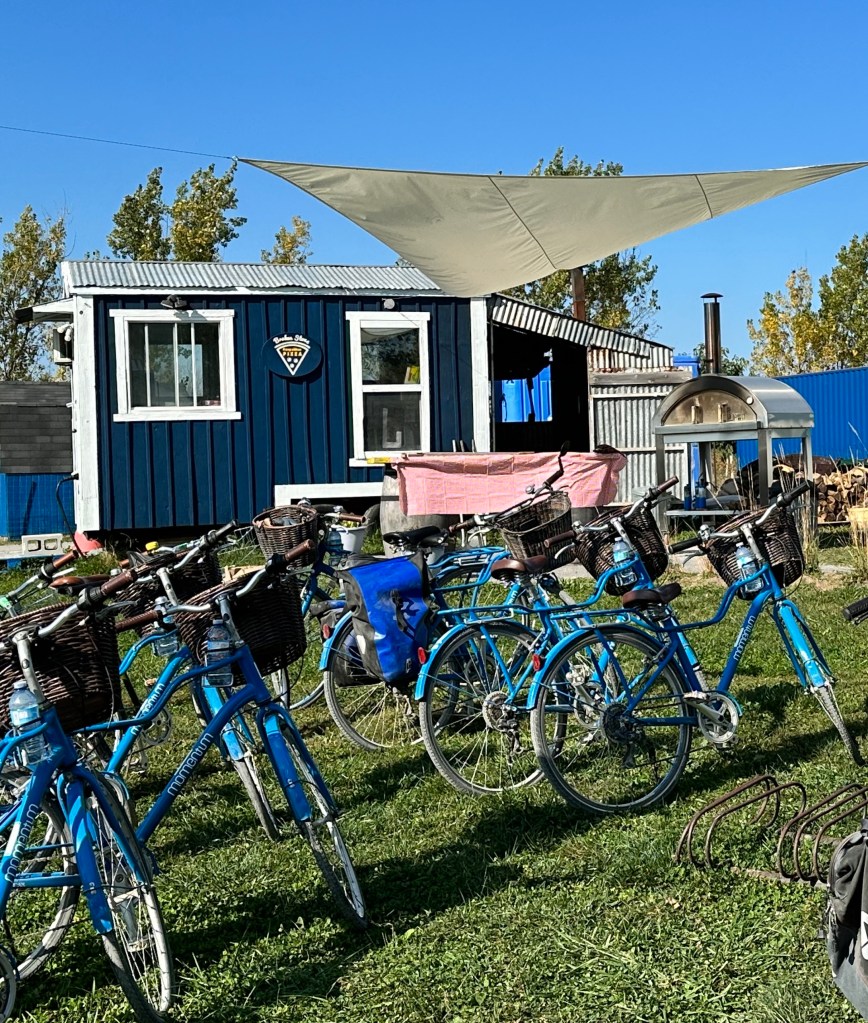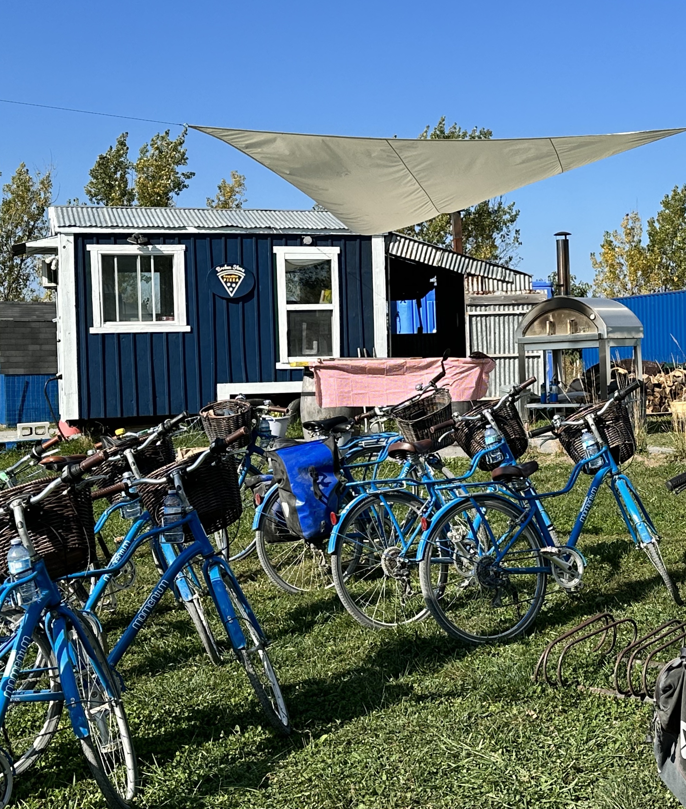 Our humble pizza setup. A group of cyclists arrived and await their pizzas off camera!